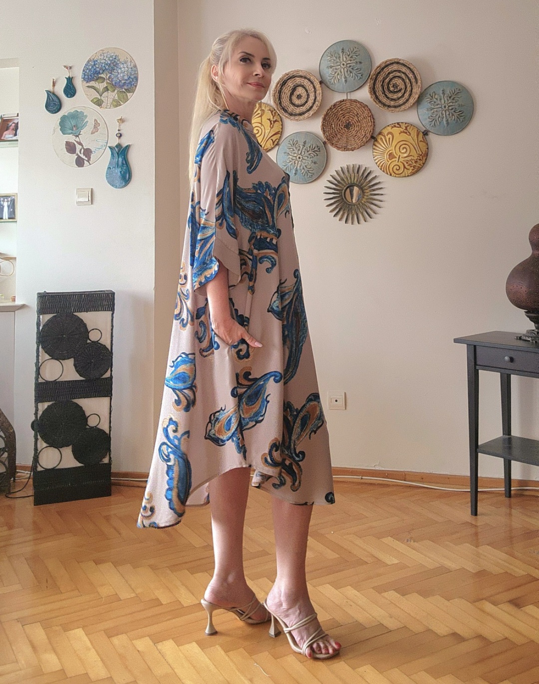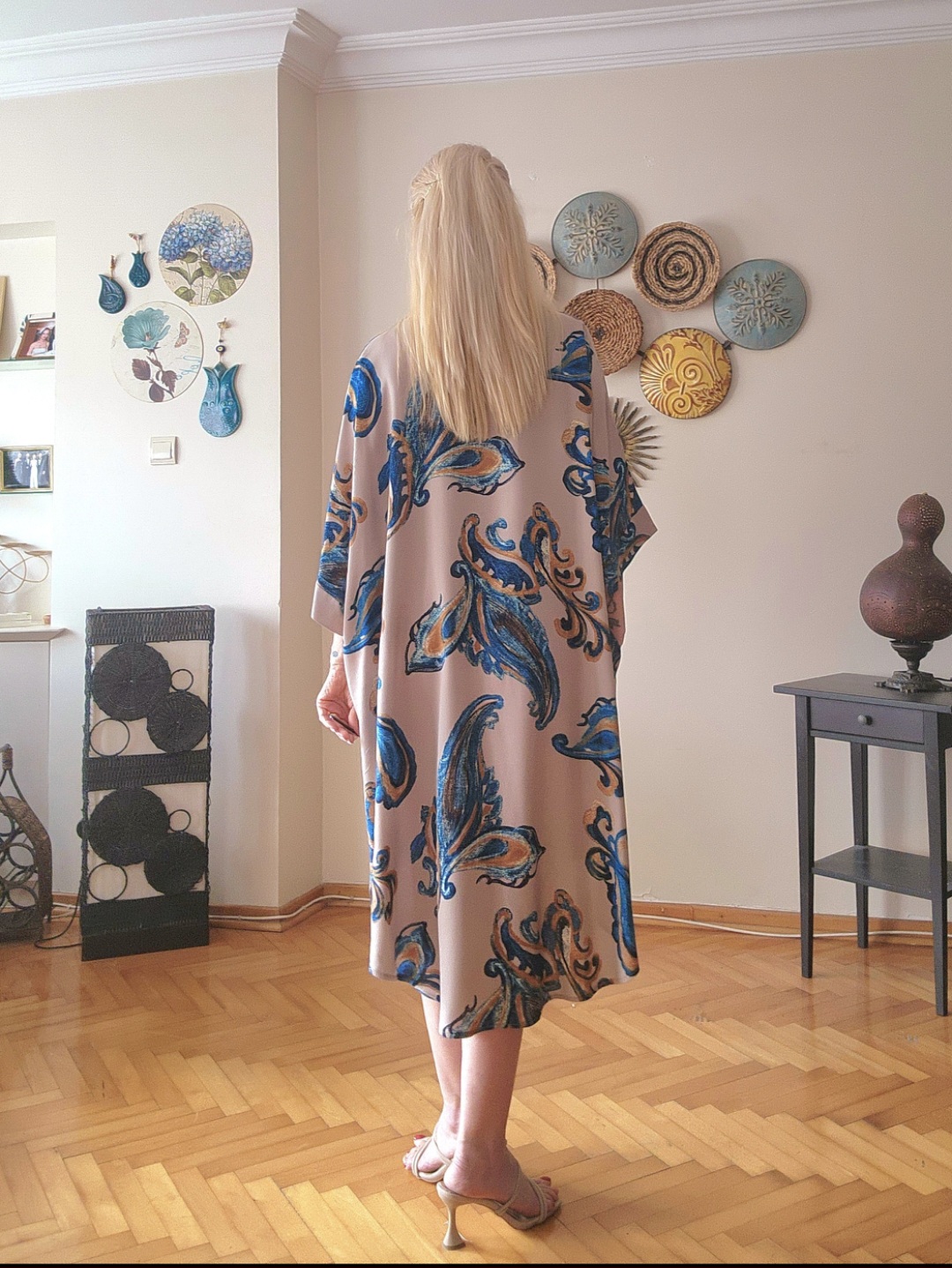 Pamuklu viskon Standart bedenlerde geniş kalıp 38-40 bedenden 58-60bedene kadar uyumludur Göğüs çevresi 160 cm iki yandan cepli kısa kollu hakim yaka gömlek elbise