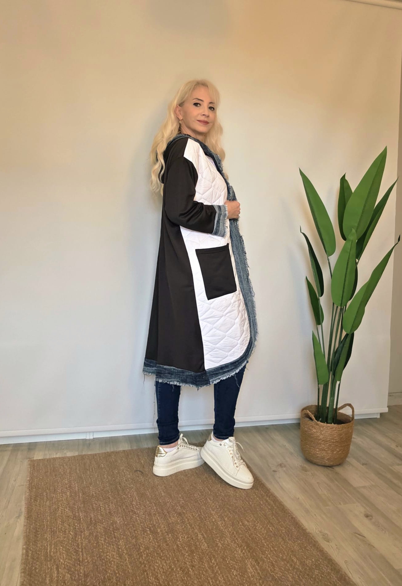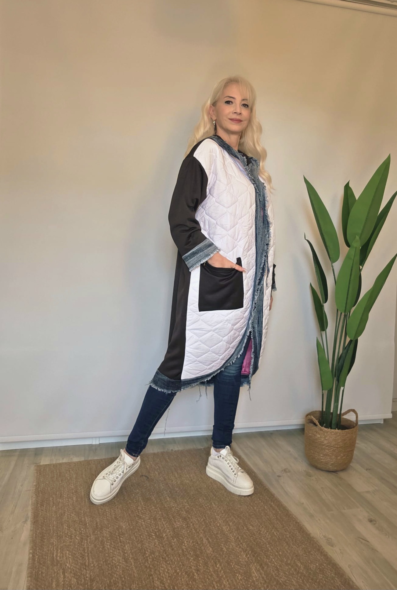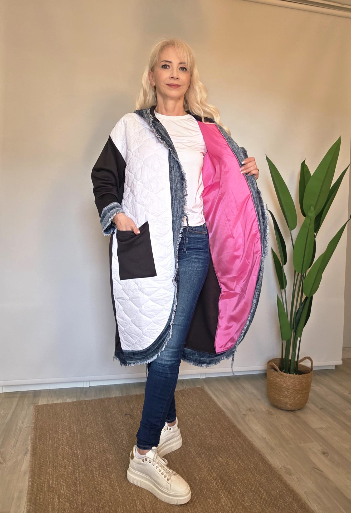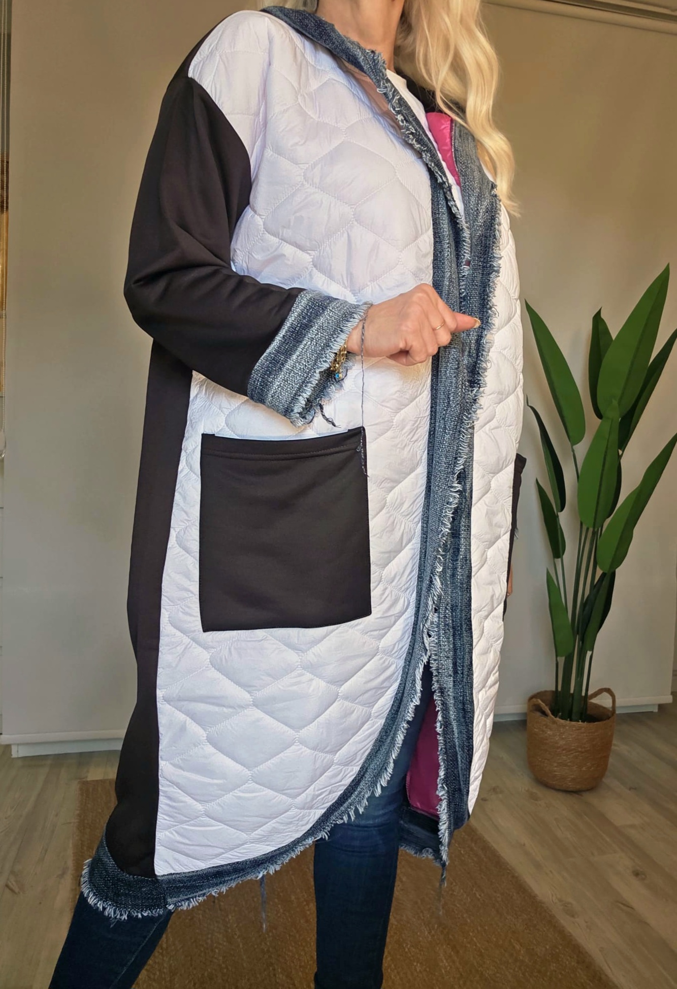 Ön beyaz kapitone anorak kumaş