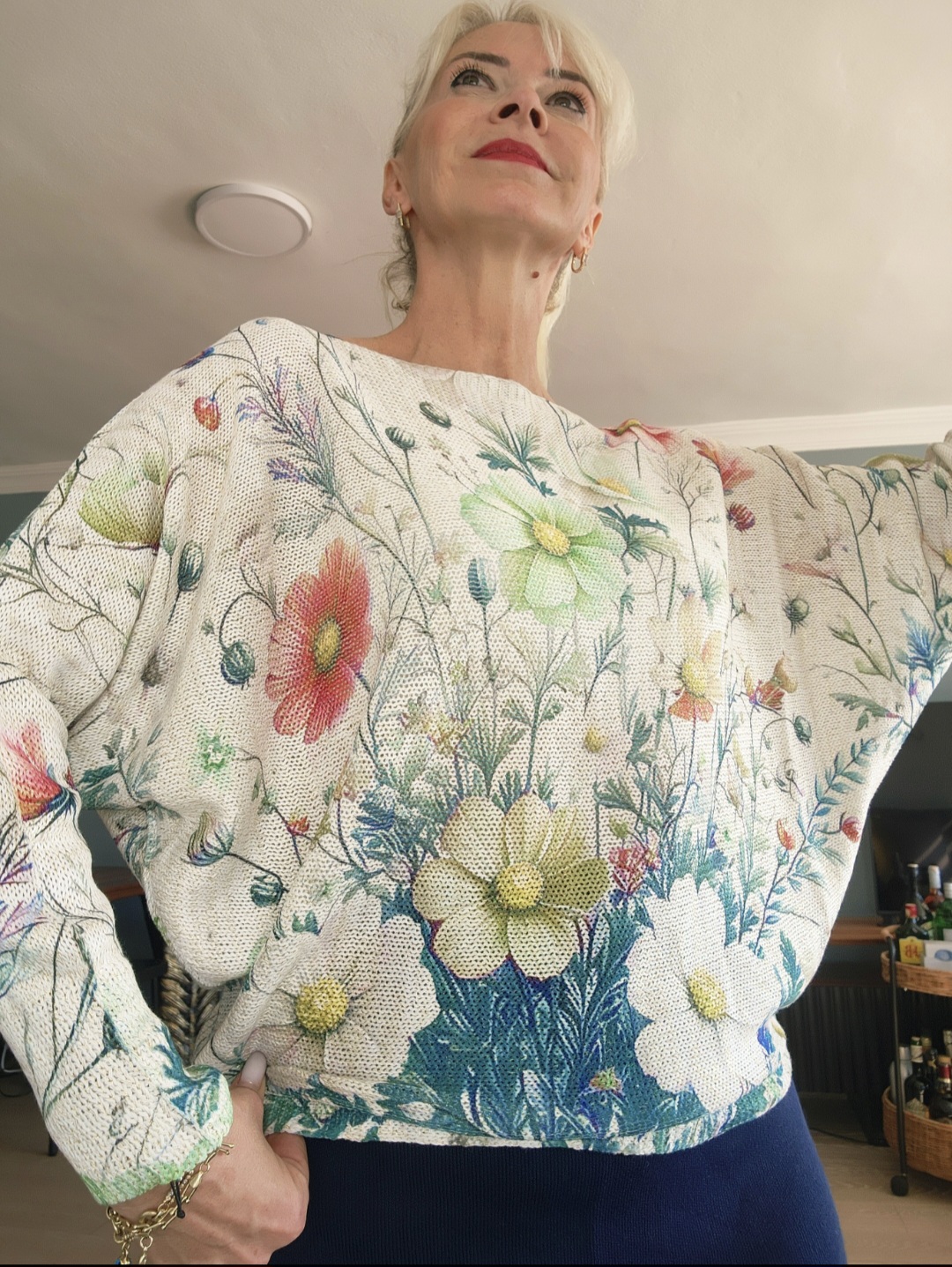 Ekru üzerine pastel çiçek görselleri yarasa kollu standart bedenlerde 36/44 beden aralığında İtalyan bluz