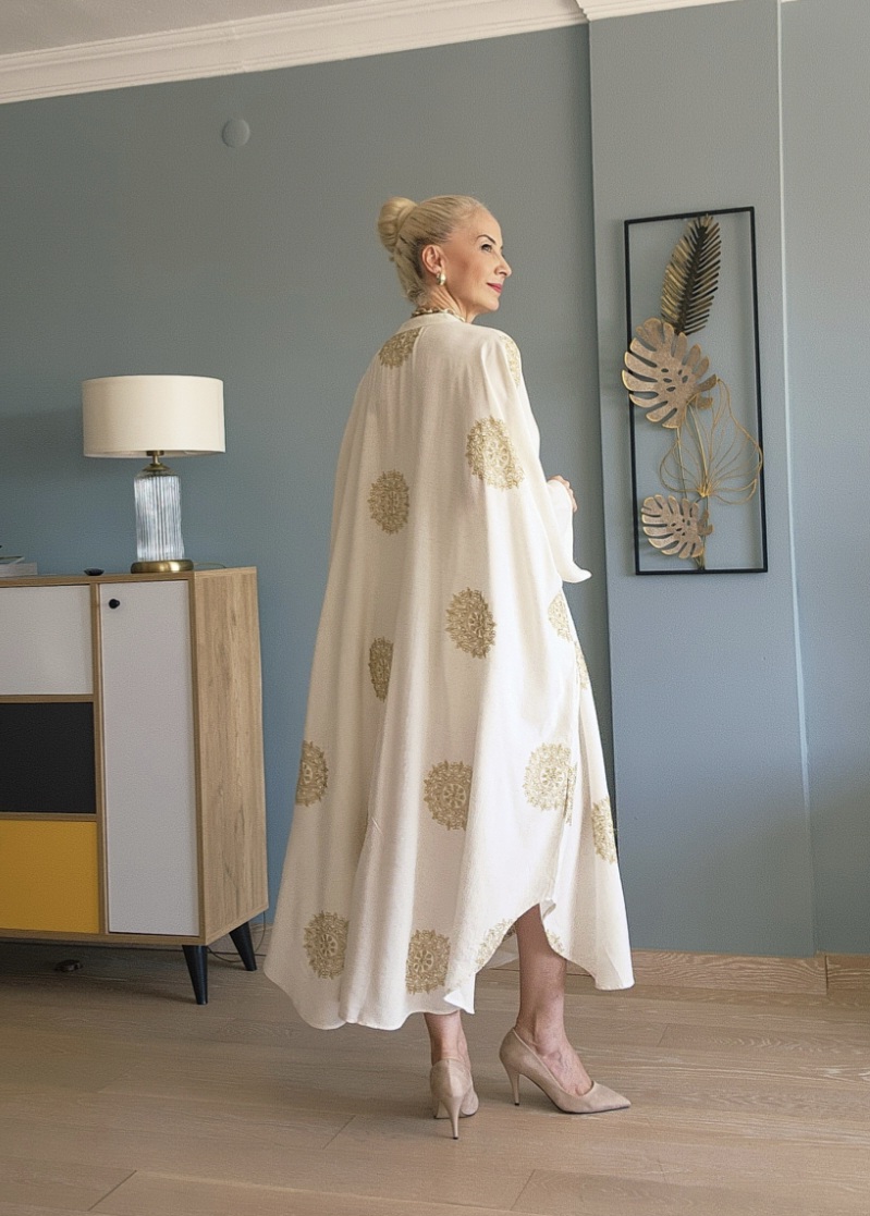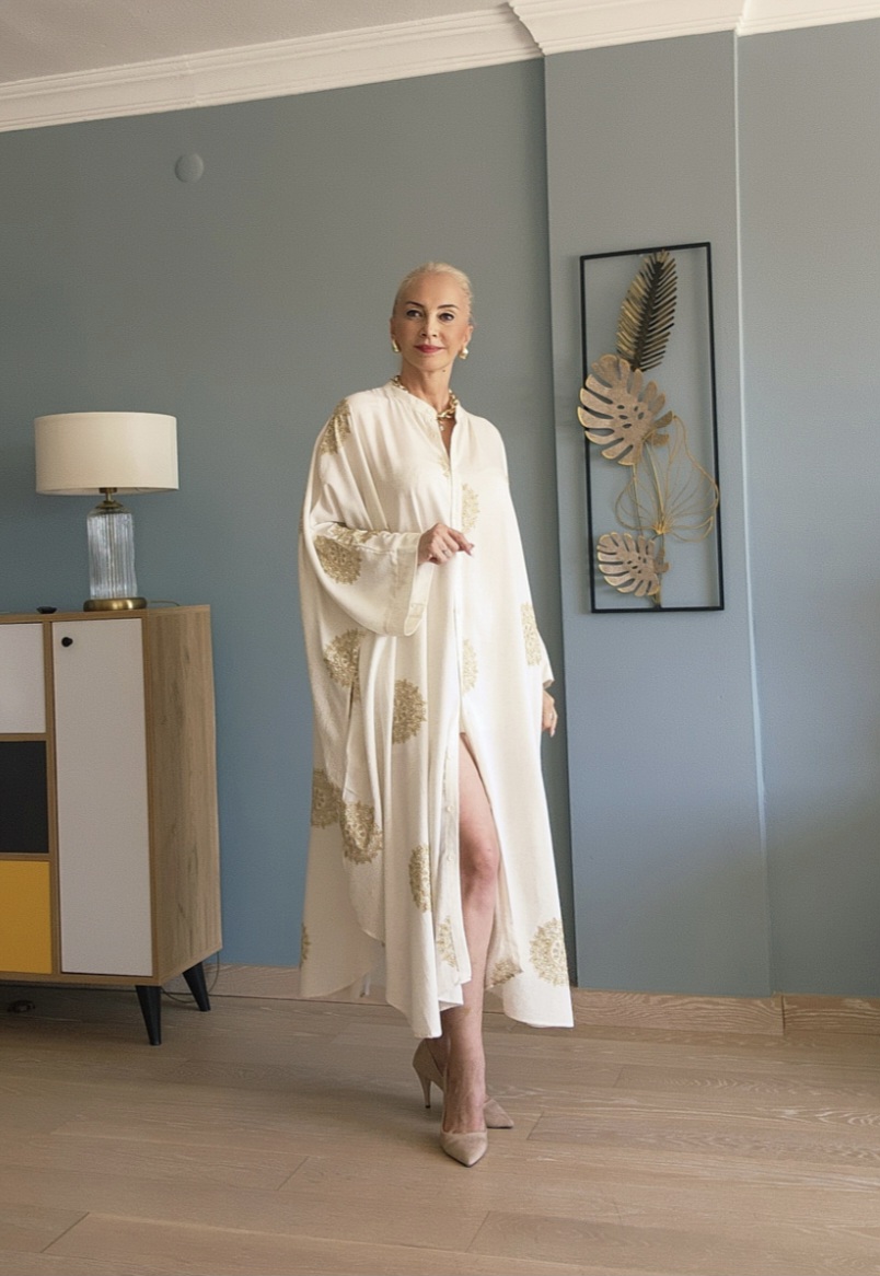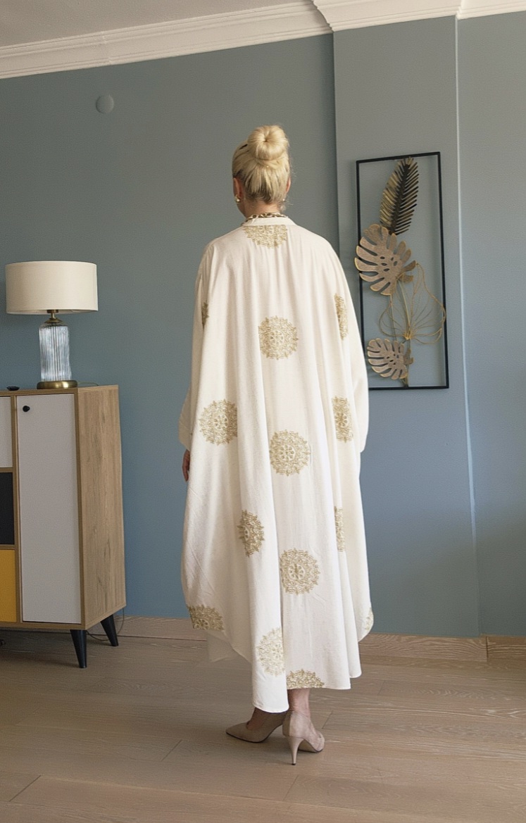 KREM GOLD NAKIŞLI GENİŞ GÖMLEK ELBİSE