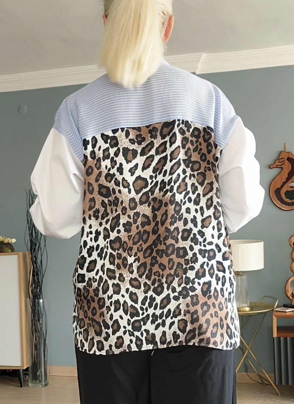 Pamuklu poplin sırtı leopar eşarp standart bedenlerde geniş kalıp gömlek