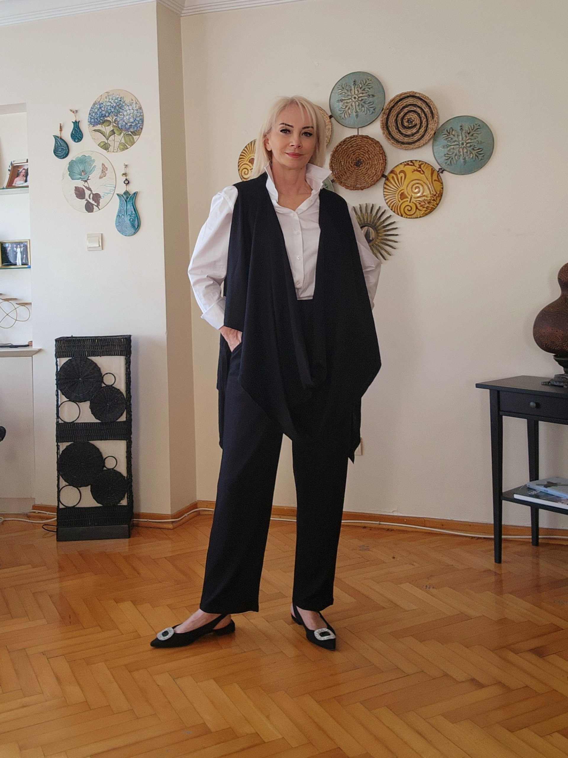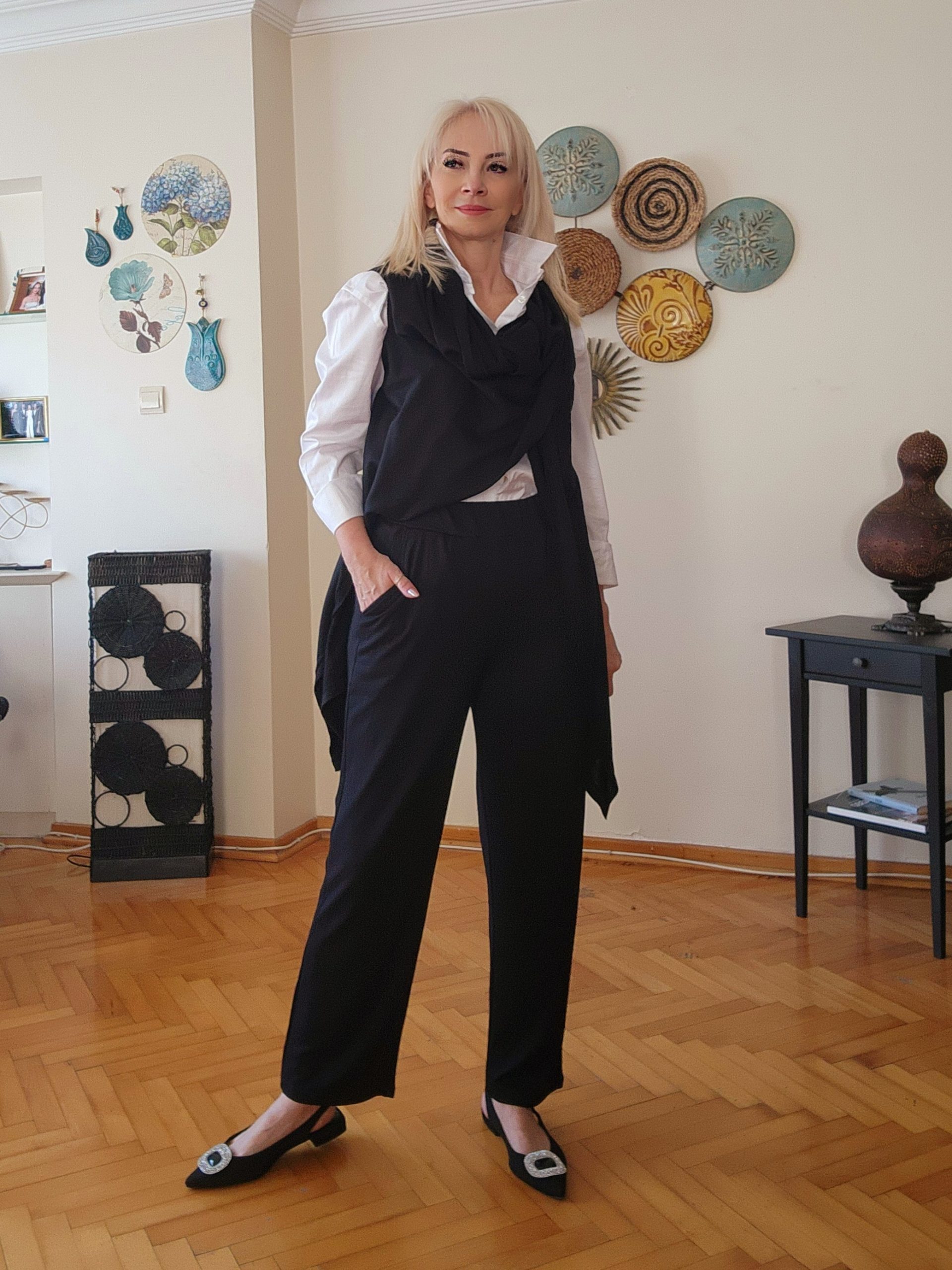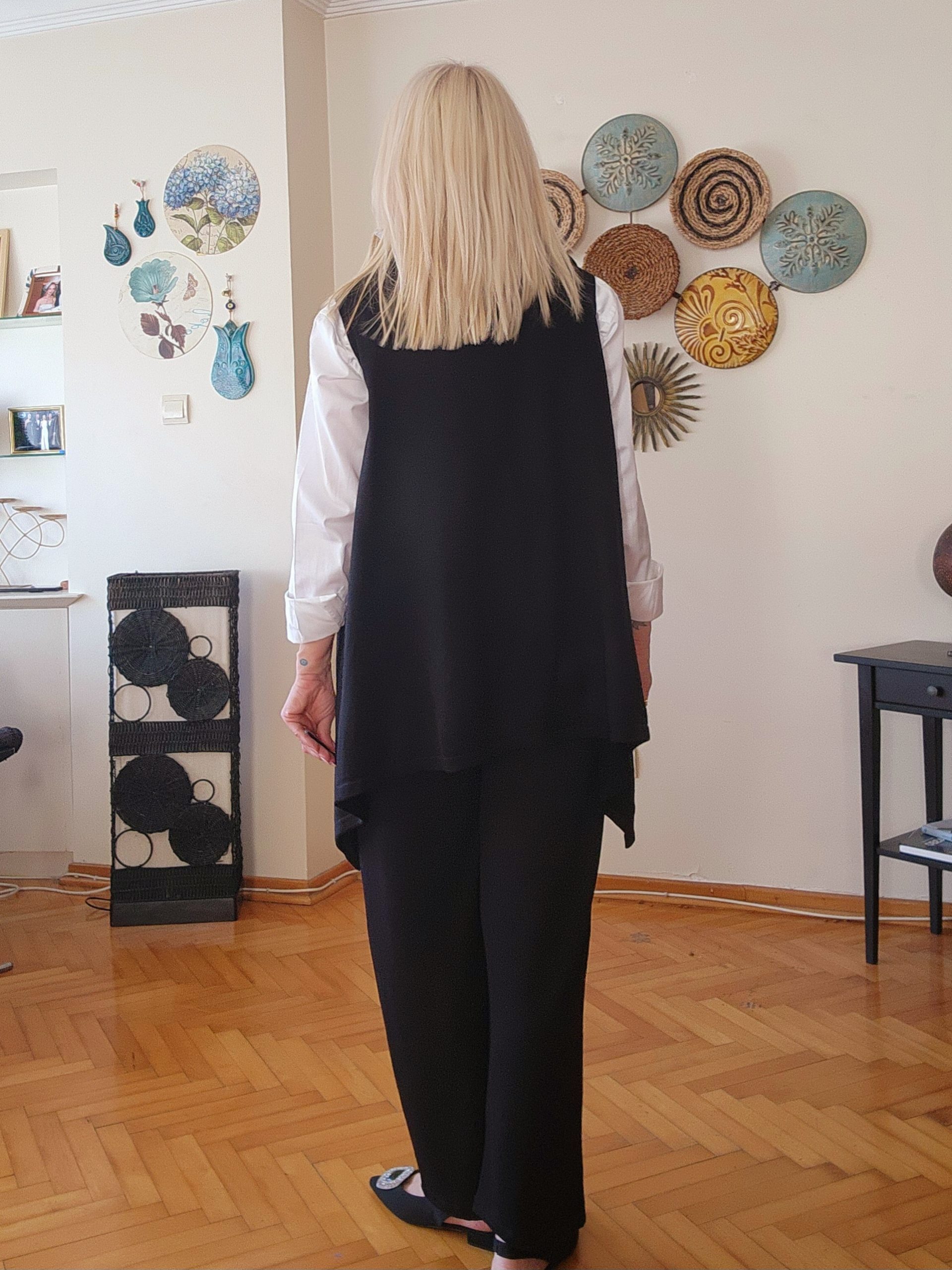 Siyah triko standart bedenlerde asimetrik kesim 36 bedenden 44-46 bedene kadar uyumludur