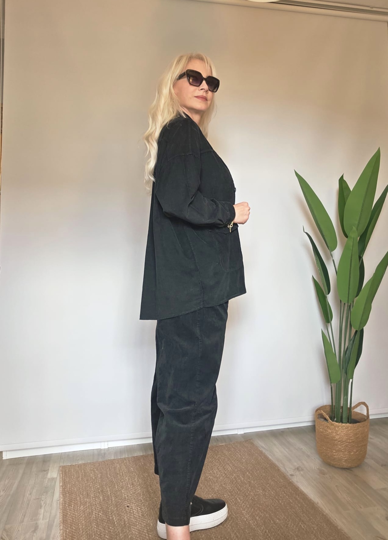 Siyah ince fitilli takım