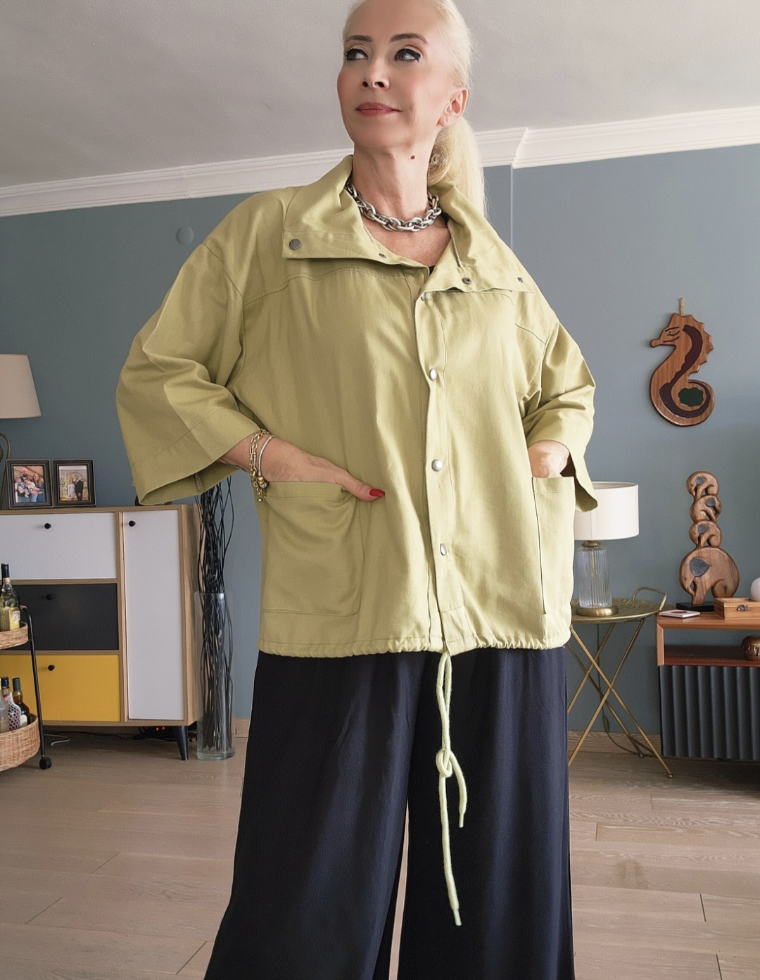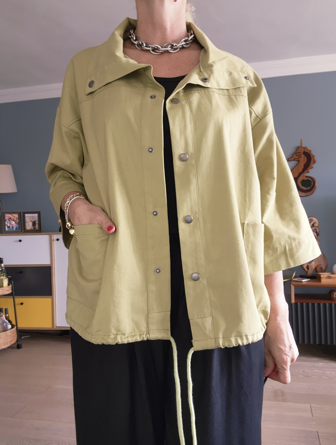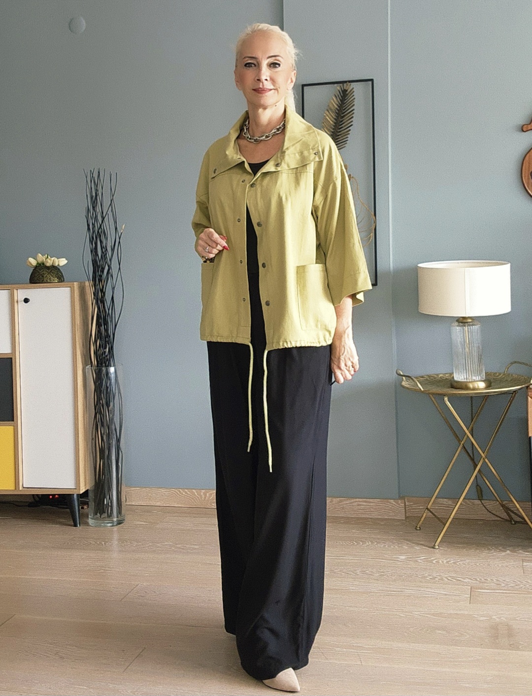 Yağ Yeşili ince gabardin kapri kol astarsız kısa mont Standart bedenlerde